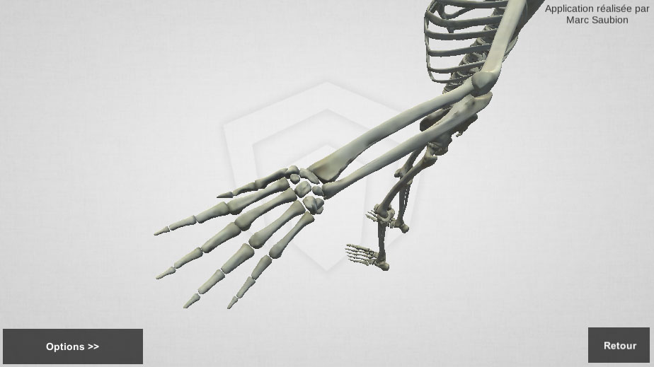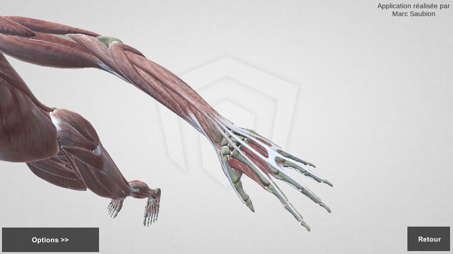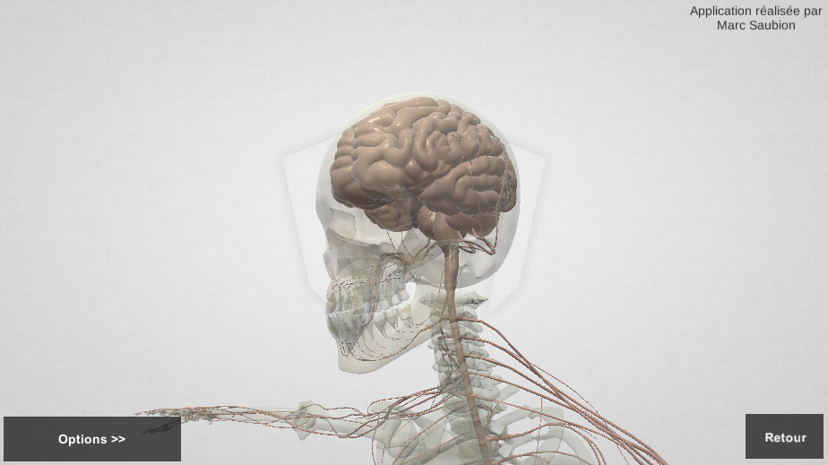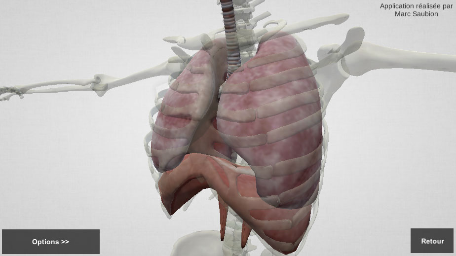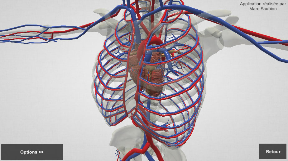 Dans cette exemple je vous présente une application 3D type E-learning dans laquelle l’utilisateur observe différents organes du corps humain. Il peut zoomer sur les parties de son choix et choisir différents types d’affichages. La 3D permettant de faire tourner le modèle il est bien plus facile de comprendre son anatomie.