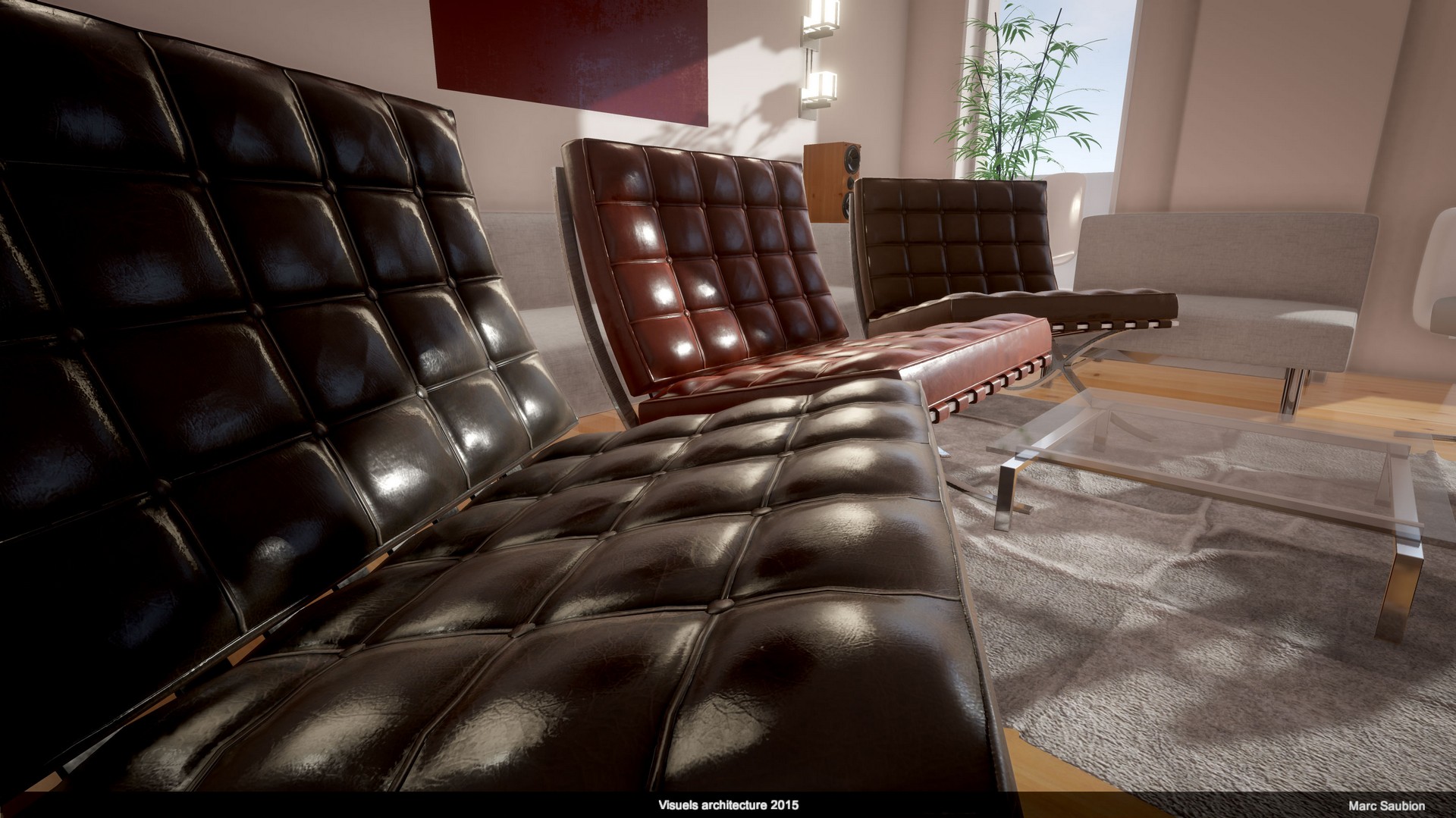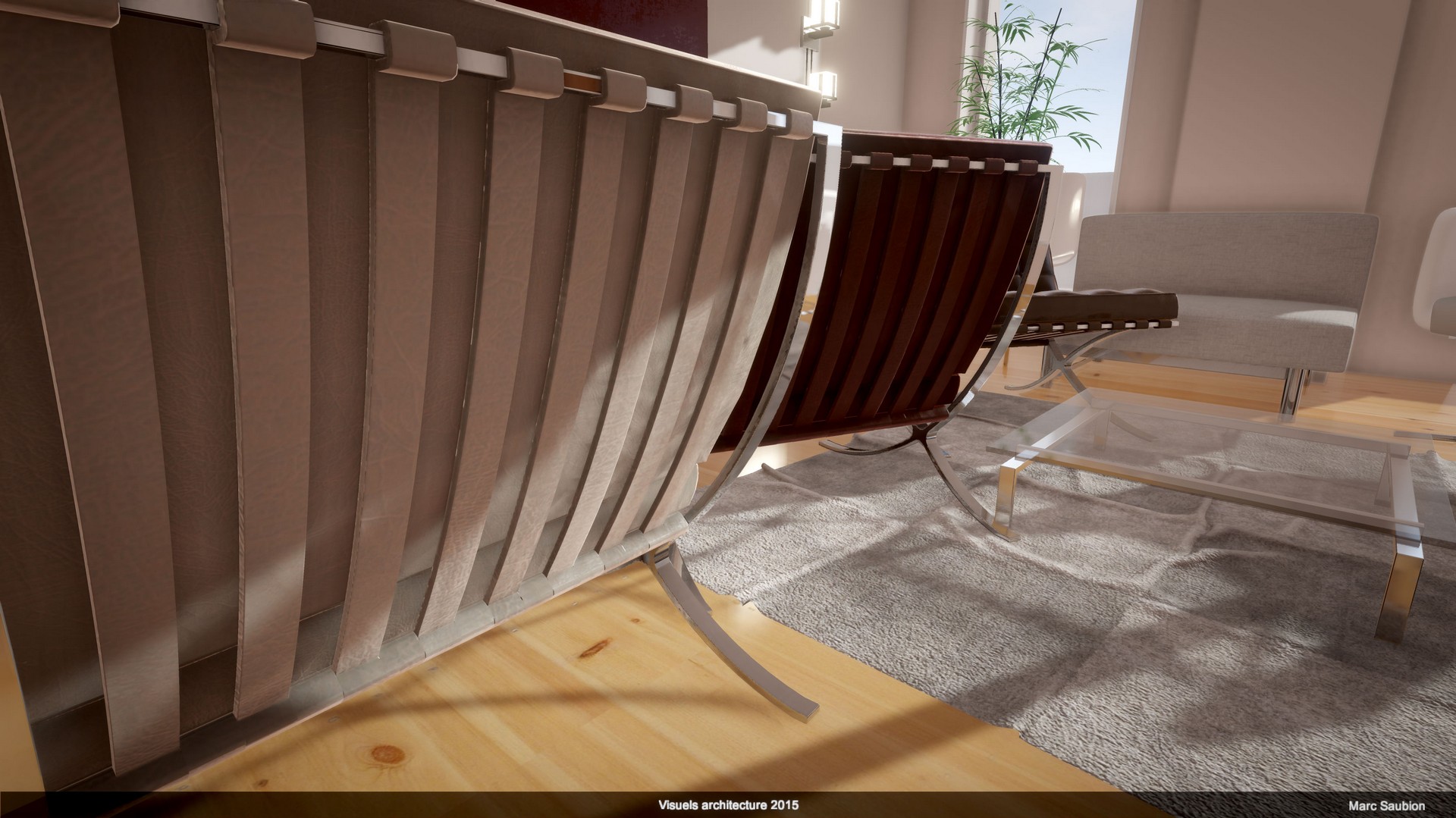 En modifiant les propriétés des textures il est possible de changer l’aspect de l’objet. Exemple ici en modifiant la texture albedo afin d’obtenir d’autres coloris disponibles sur la chaise Barcelona.