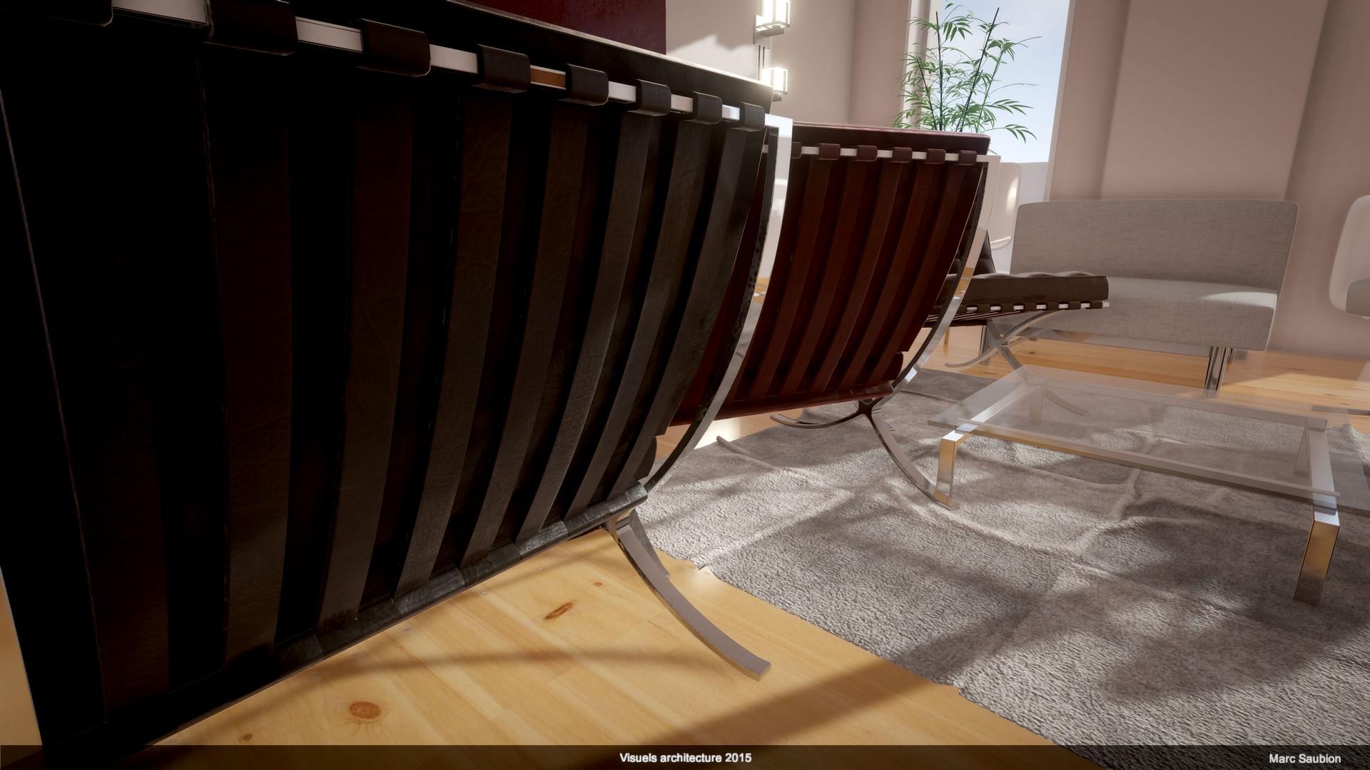 Ce modèle détaillé d’une chaise Barcelona fait 9.9k polygones contre plus de 61k pour le modèle high poly tout en gardant la même qualité visuelle.