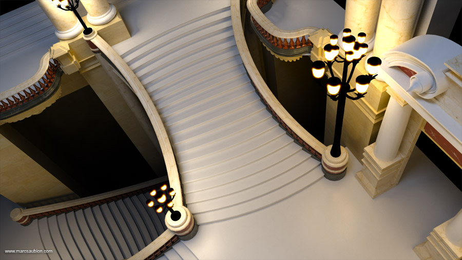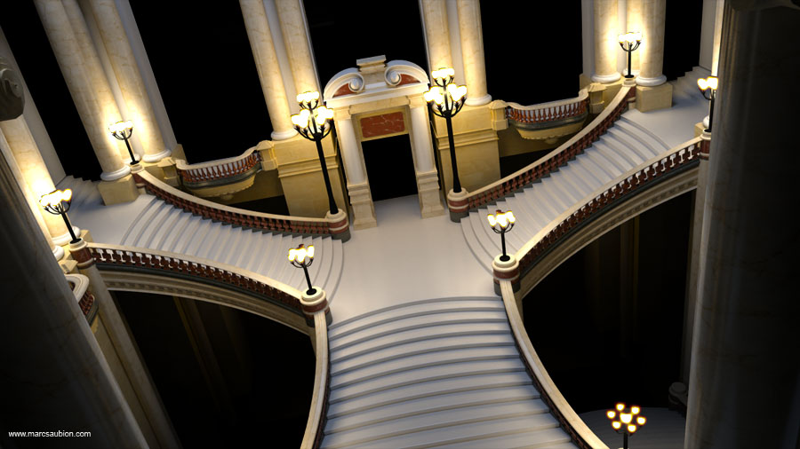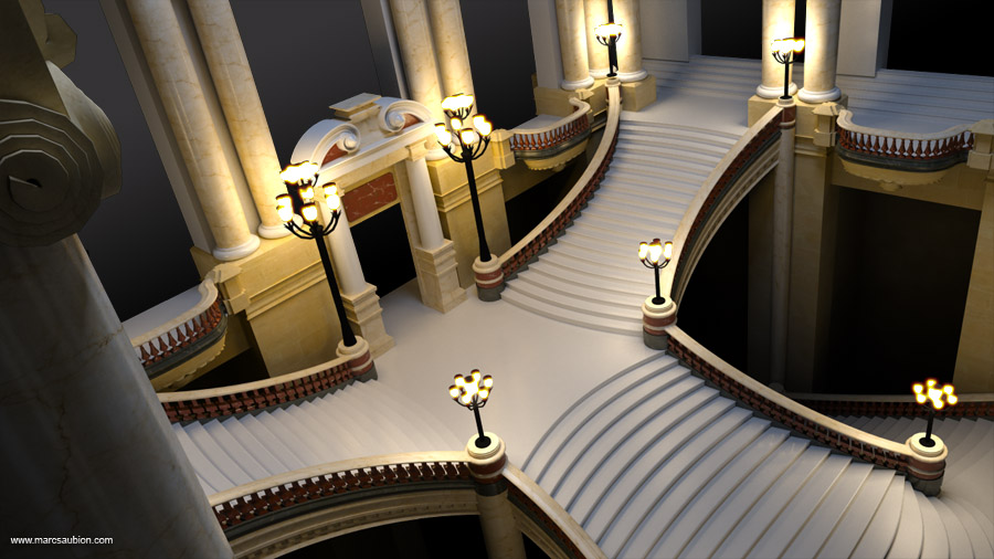 15Mai16 juin, 2019 By Marc Opera Garnier: salle du grand escalier Rendus 3D du grand escalier de l’Opéra Garnier. Ce décors avait été modélisé pour mon film de fin d’étude, je l’ai par la suite repris pour de nouveaux rendus. Les modèles ont également été importés dans Unity 3D à titre expérimental. Partager la publication "Opera Garnier: salle du grand escalier" FacebookTwitterGoogle+ViadeoLinkedInE-mail